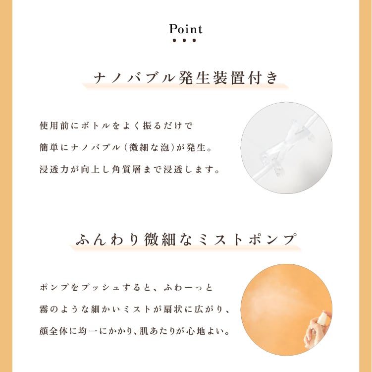 メイクの上からナノバブルの微細なミストで角質層までうるおい補給。